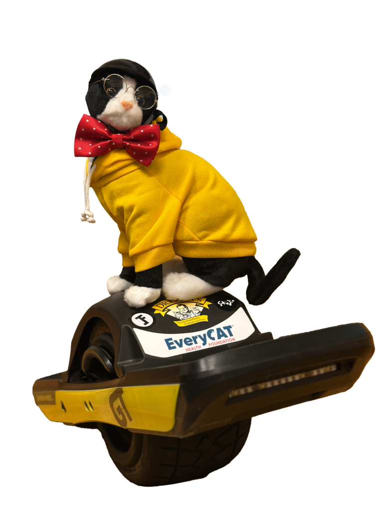 Joey Luthman, along with our very own Purrfessor Cat, will embark on an ambitious one-wheel ride , “Joey’s Ride for Cats,” travelling over 4000 miles across America to raise awareness for Chronic Kidney Disease (CKD) and Feline Cancer Research.