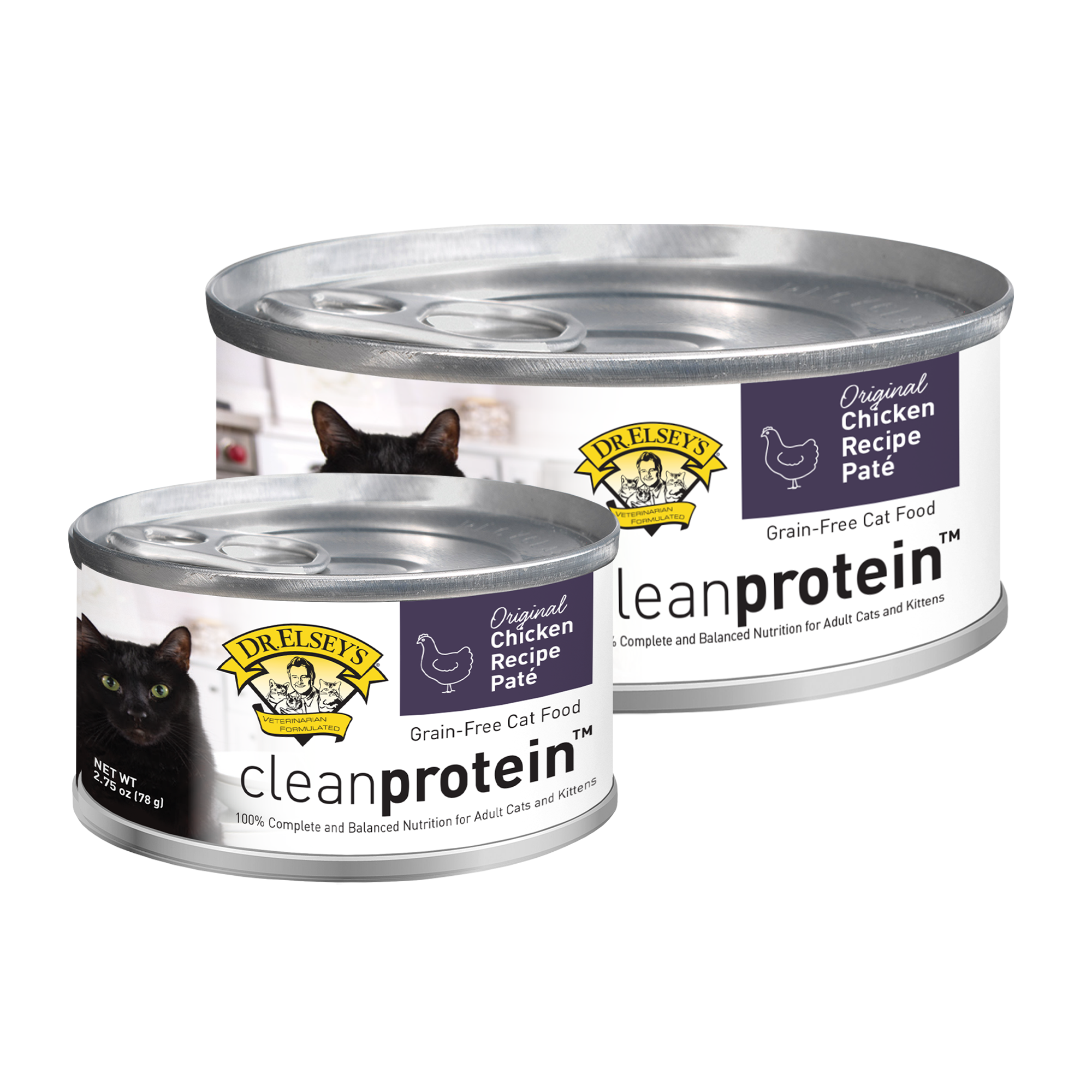 Inspired by the protein levels found in a cat’s natural prey, Dr. Elsey’s cleanprotein™ canned paté offers cats of all ages a simple way to get balanced nutrition plus added moisture. Dr. Elsey’s cleanprotein™ incorporates high quality animal-based proteins or fish as the first ingredient and no added fillers or preservatives. Feeding high quality protein can help to curb your cat’s appetite and maintain healthy kidney function at every age. Dr. Elsey’s cleanprotein™ is veterinarian formulated with high protein levels and low oxalate to support the nutritional needs of active, overweight and diabetic cats.